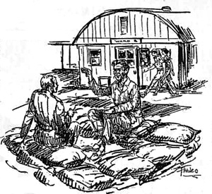 Somebody spoke to me. I had to look hard to recognize S-Sgt Ira Holding in pajamas instead of faded jungle fatigues, slippers instead of muddy jungle boots, and with a dignified bald spot instead of a steel pot.