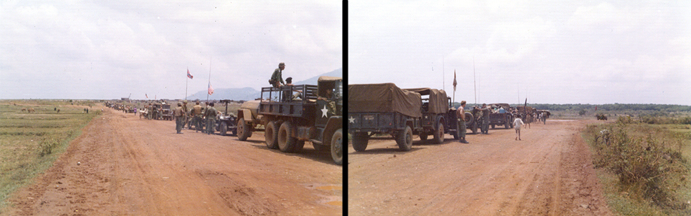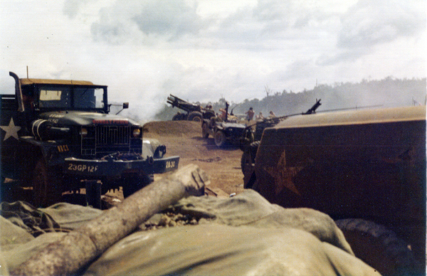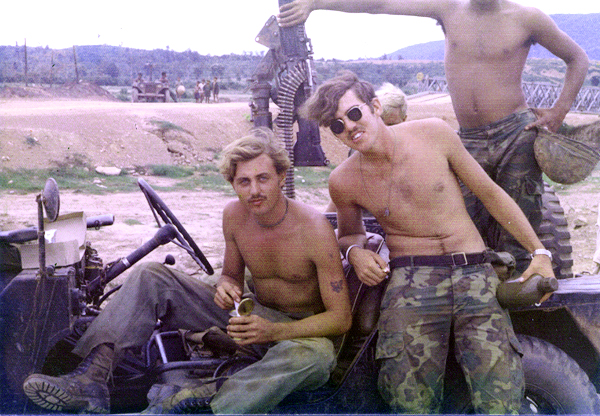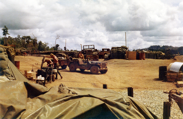 Chris Halasz' Pictures from 1971Chris Halasz arrived in Vietnam on 16 November 1970. He drove for Captain Swift after the 6 November 1970 mounted ambush at Xuan Loc in which Swift's driver, remembered as Ben or Benjamin, was seriously wounded. As Chris recalls, he later messed up badly with the old E-7 First Sergeant in the rear and did not get to drive for Captain Baily, who relieved Swift in December 1970. Chris subsequently made his way to the field where he settled into the first platoon's 106 mm recoilless rifle jeep. ![]() Dave Lowe sits shirtless in the T.C.'s seat while Pvt Brown stands to his side. ![]() From left: Chris Halasz, Unknown, Sgt "Ski" (blond head in rear), Jim Dykes (leaning on the M-60). ![]() Dave Lowe and Chris Halasz jump from a bridge over QL-13 - Thunder Road. Life in the Rear![]() Kim and Sue, Hooch maids from Dion ![]() "Pork Chop" - the mascot at Phu Loi. Fire Base Judy - Where the Living Ain't Easy![]() You can't believe the recruiting poster about the luxurious accommodations at Fire Base Judy, ![]() At Judy, the battery of three 155-mm towed cannon were so close to our sleeping areas that the concussion from firing could blow an air mattress from under a sleeping trooper. The living arrangements really sucked. I shared my sleeping quarters at Fire Base Judy with a rat. It would jump from the sandbagged edge of the wall onto my cot late at night or early in the morning as it made its way from its nest to the mess hall. It occasionally landed on my legs. Dave Lowe also had a rat at Judy that did the same thing, except that it landed repeatedly on Dave's face. Dave always objected but never so pointedly as when monsoon arrived, enhancing the rat-in-the-face-while-asleep experience to the gold level of wet-rat-in-the-face-while-asleep. ![]() The sleeping quarters at Fire Base Judy: The rats lived in the sandbags. Both troopers and rats ate at the mess hall, which was that thing in the center of the picture with poles holding up a cover and trash and paper plates on the ground. We were only transients at Judy, but there was little excuse for Blue Tiger officers and senior NCOs to allow the troop to live in such degenerate conditions. They owed their troopers better than they gave. Fire Support Base Mace Was BetterChris's pictures from Mace show that it was at least cleaner at Mace than at Fire Base Judy. ![]() Convoy escort jeeps at FSB Mace. ![]() Looking east towards FB Judy over the well-maintained barracks at Mace. A one-star general spent a lot of time at Mace, which served as headquarters for the last brigade of the First Cav. The extra brass made for better living conditions. ![]() Looking west to Nui Chua Chan. If you ignore the sandbags, Digging in at Tay NinhChris took some good documentary pictures of one of my favorite war stories. It was about how the engineers we worked with saved us a ton of work by digging our fighting and sleeping positions for us with backhoes. They even dug a pit for my 3/4-ton ammunition truck. That meant we did not have to hump thirty 50-lb. cases of ammunition twice, nor did we have to fill sandbags to cover the offloaded pile of explosive crates. The engineers were cooperative because we provided security for them every morning as they cleared the road of mines from Tay Ninh north to Katum at the Cambodian border. We went to Tay Ninh as a reinforced cavalry troop, joined with a platoon of tracks and a Sheridan from the 1st of the 5th Mechanized Infantry, 25th Infantry Division. |