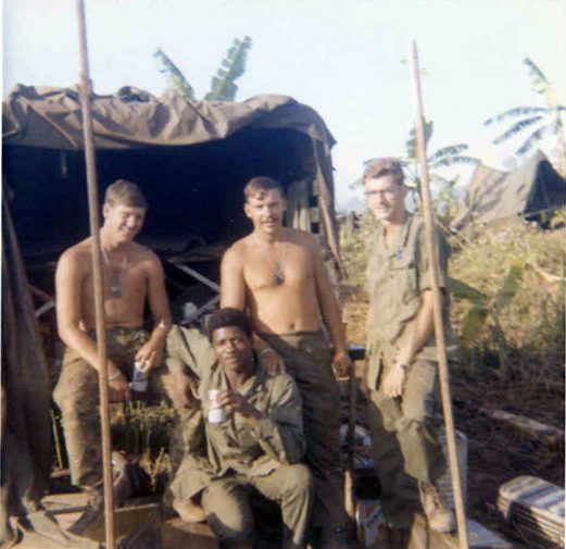 VIET1.JPG Standing, l-r: Sterling Withers, Lee Ballinger, William Nevius. Seated: Marvin Hughes Location: Side of Nui Chua Chan From the Sterling Withers Collection