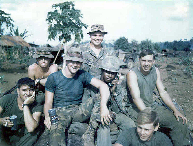 VIET9.JPG Standing, Sgt Ski Middle Row, l-r: SSG Smith, Thomas Fortner, Sterling Withers, Marvin Hughes, Lee Ballinger Front: Marvin Carlisle Location: West Side of Nui Chua Chan From the Sterling Withers Collection