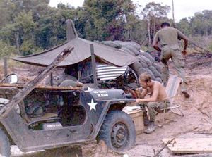 DEJA VUThe 3/17th sent me a series of pictures taken on the Squadron's recent JRTC (Joint Readiness Training Center) rotation at Fort Polk, LA. I looked at the pictures and was struck by the similarity of many of the pictures to ones we took in Vietnam. I guess soldiering in the field doesn't change that much over time. The equipment may change, but the troopers solve the same problems with the same field expedience. I thought it would be interesting to see two generations of 3/17th troopers side-by-side, with the 1999 troopers on the left and the 1970 troopers on the right. It proves the old adage: "Same shit, different day." Bill Nevius, Delta Troop Webmaster ![]()