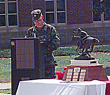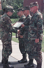 The soldiers of the 3-17th Cav have worked hard, spending the last year training at an unbelievable operational tempo, according to Sgt. Kint Witten, 3-17th Cav scout. During this time, Witten said the scouts have participated in numerous training events, including Mountain Peak; Warrior Peak; Joint Readiness Training Center (JRTC); desert operations in Yuma, Ariz.; Joint Task Force 6; a drug interdiction mission in El Centro, Calif.; armor simulation training (SIMNET) at Fort Knox; various opposing forces (OPFOR) missions, as well as running ranges and assisting units in preparing for the Bosnian mission. "I feel the award is a testament to the hard work and long hours the troopers in A Troop put in in '98," said 3/17th Squadron Command Sgt. Maj. James E. Dale. The cavalry scouts are led by Capt. Richard Rouleau, A Troop commander. At the ceremony, Rouleau and 1st Sgt. Richard Eastwood, Redhorse Troop, received a Certificate of Achievement for Excellence in Leadership, the Draper Leadership Award, a leather-bound Draper Combat Leadership book, and the Armor Center Coin. Sgt. 1st Class Arthur Allen, platoon sergeant, also received the Draper Plaque on behalf of Apache Troop. "I am very proud of the cavalry troopers in A Troop," said Rouleau. "They have done an outstanding job and continue to shine." "What I am most impressed with," said Sgt. Kint Witten, "is that the leadership gave us all the credit."